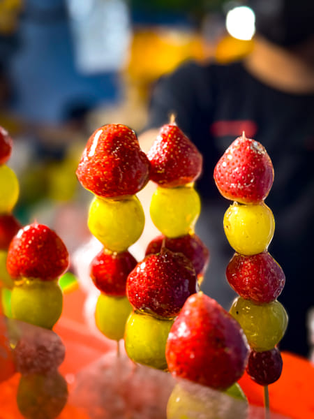 8. Tanghulu – Sweet candied treat of fresh fruits coated in melted sugar.