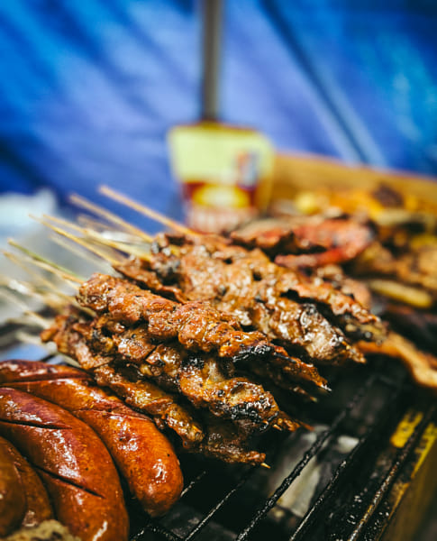 3. Grilled Meat Skewers – From pork and chicken to exotic choices like isaw (chicken intestines), these smoky delights are crowd favorites.